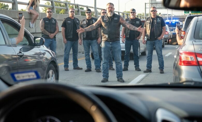 When twelve bikers blocked a school bus at dismissal, parents started screaming—because no one could…