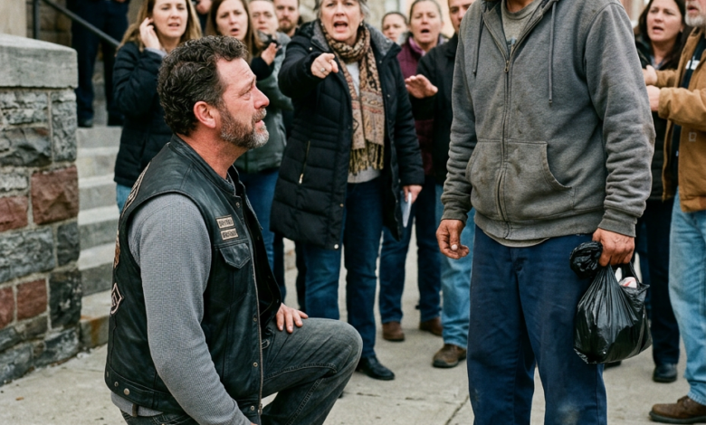 The Biker Who Knelt in the Supermarket — And the Truth That Silenced the Crowd