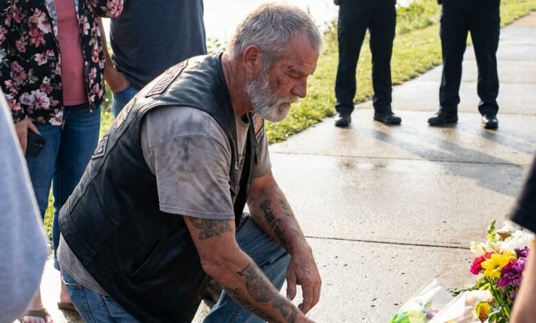 A Biker Knelt to Tie a Little Girl’s Shoe in a Crowded Street — And Everyone Thought the Worst