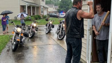 Across town, in a quiet garage, the lead biker removed his vest and hung it carefully on a nail. His phone buzzed with a short message from an unknown number.