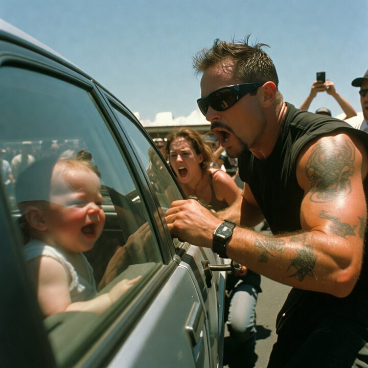 A Baby Was Trapped in a Hot Car — When a Biker Smashed the Window, Everyone Screamed for the Police