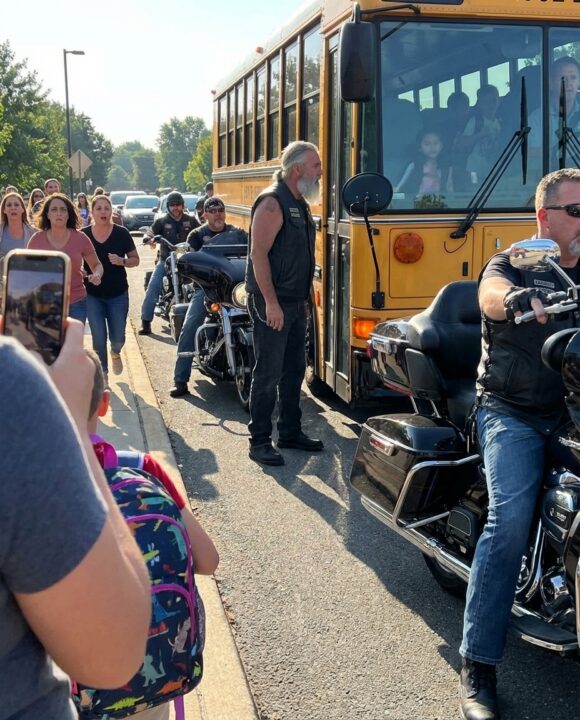 A Biker Crew Surrounded a School Bus After Dismissal — Parents Panicked Until the Truth Inside Changed Everything