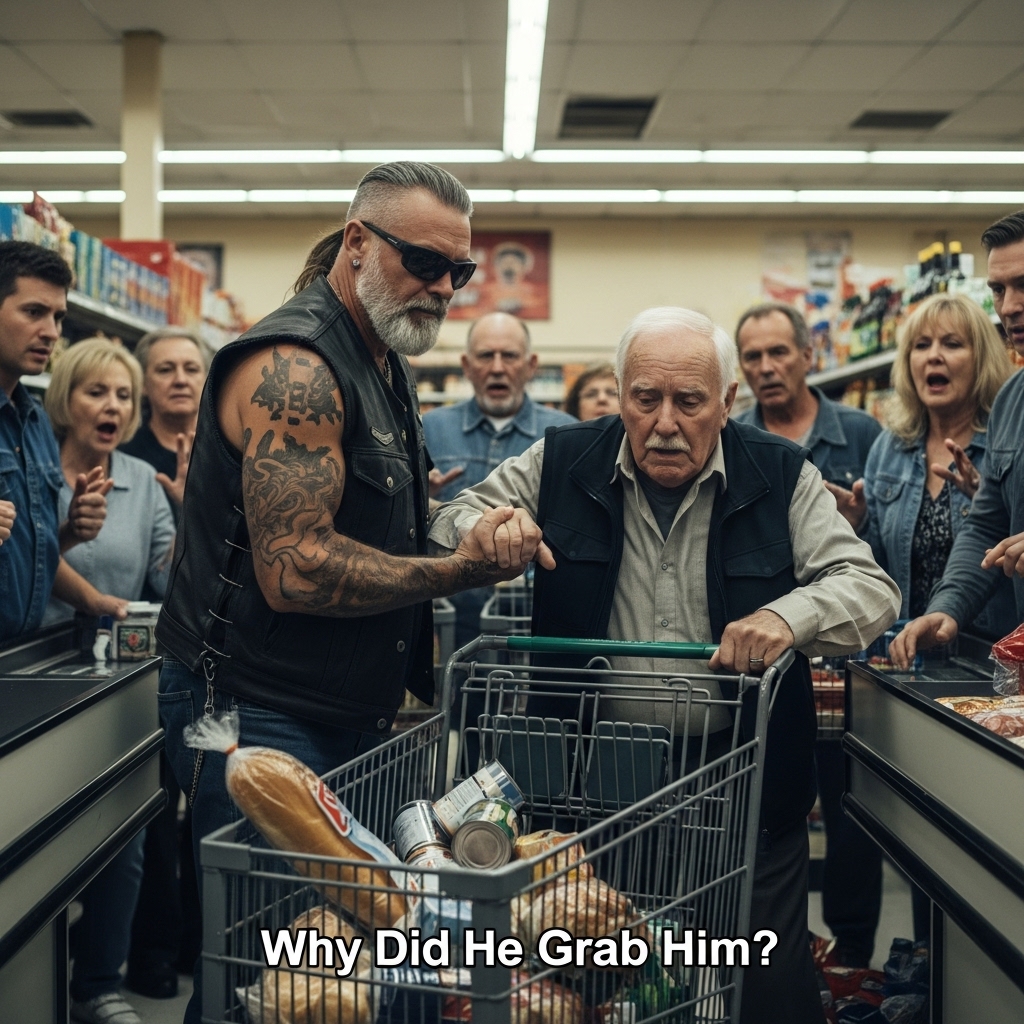 A Biker Pulled an Old Man Out of a Grocery Line — Witnesses Were Furious Before the Truth Emerged