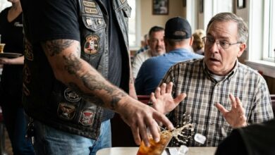 People began shouting when a biker violently grabbed food from a homeless man and threw it to the ground—“Hey! That’s his only meal!”—but why did the biker never look at anyone else?