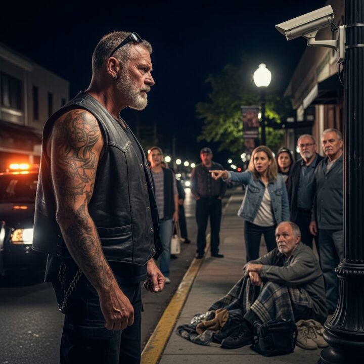 A small crowd gathered, instinctively widening the circle around the biker. Someone muttered, “Figures.” Another said, “They’re always trouble.”
