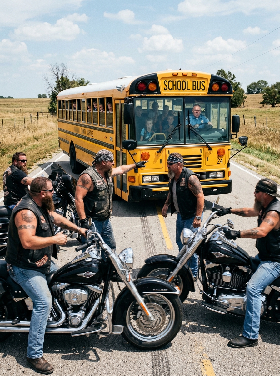 A Group of Bikers Blocked My Son’s School Bus in the Middle of the Road… What the Driver Found When He Stepped Down Made Everything Go Silent