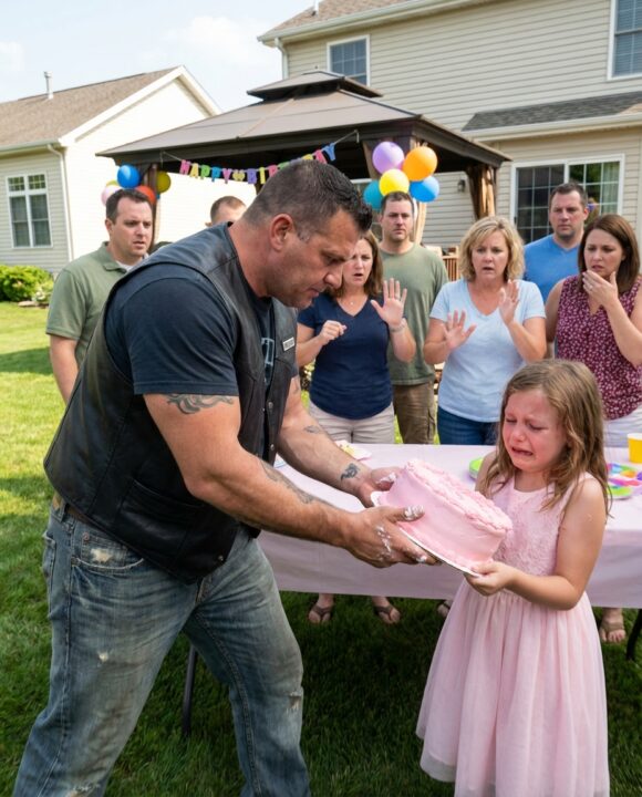 A Rough Biker Snatched a Little Girl’s Birthday Cake in Front of Everyone — But What He Did Next Left the Entire Crowd in Tears
