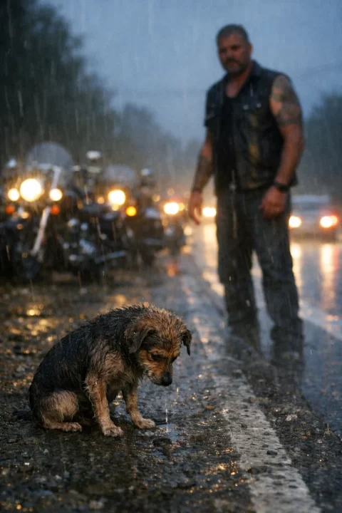 A Shivering Dog in the Rain — When a Biker Convoy Stopped, the Ending Left Grown Men in Tears