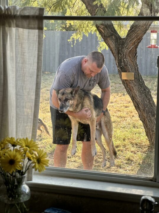 He said, “Lara. Every K9 handler thinks about it. Every one of us. We think about it the day we sign the partnership paperwork. We know the dog will retire before us. We know we will outlive the dog. The math is in the application.”