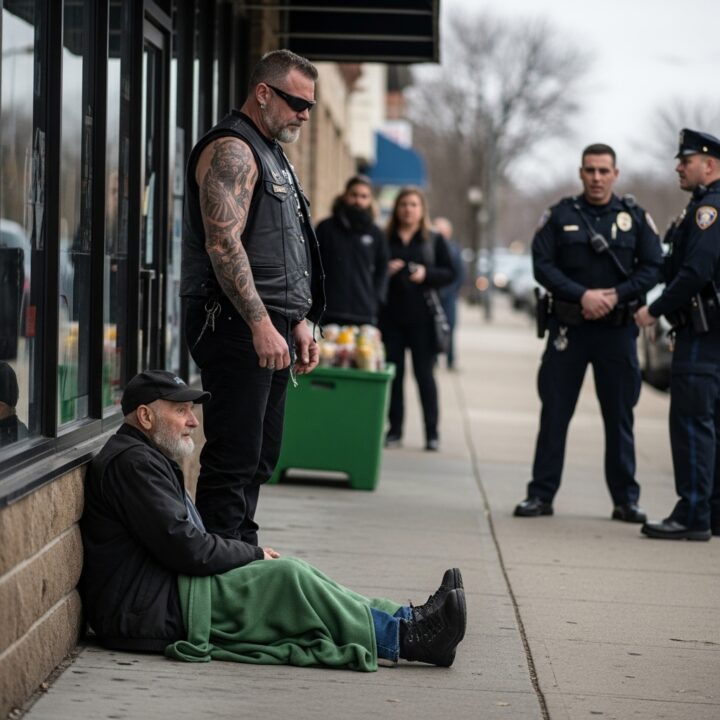 An Old Man Was Reported to Police for Sleeping Outside a Store — One Sentence from a Biker Silenced Everyone