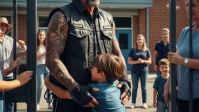 They Banned the Biker From the School — Until a Child Suddenly Ran Out and Hugged Him