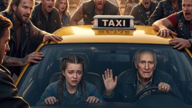 A swarm of bikers surrounded a moving taxi — the driver panicked, bystanders cursed, and no one knew the girl inside had just sent a hidden SOS signal