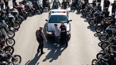 Thirty leather-clad bikers forming a silent circle around a lone police cruiser in the middle of rush-hour traffic should have…