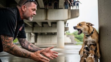 The Mother Dog Under the Bridge — When a Biker Knelt Down and Everyone Thought He Was About to Hurt Her