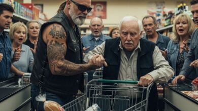 A Biker Pulled an Old Man Out of a Grocery Line — Witnesses Were Furious Before the Truth Emerged