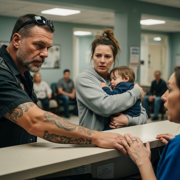 The hospital lobby froze the moment a biker slammed his hand down on the front desk, while a mother sobbed beside him, whispering that her child couldn’t breathe.
