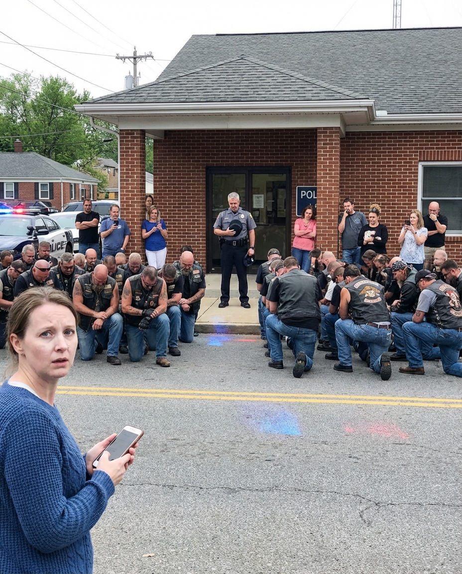“They’ve got a biker group outside the station,” the caller said, voice shaking. “They’re all kneeling… I don’t know what they’re planning, but it feels wrong.”