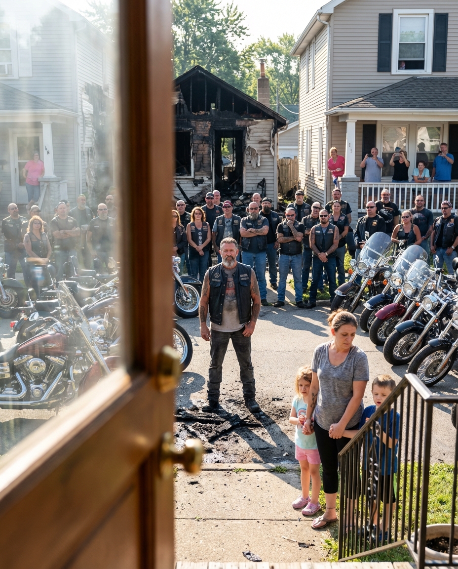 Forty Bikers Surrounded a Burned House in Silence — and the Neighborhood Thought Revenge Had Come