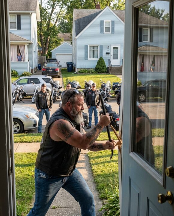 The door was replaced two days later—paid for quietly by the same bikers who broke it.