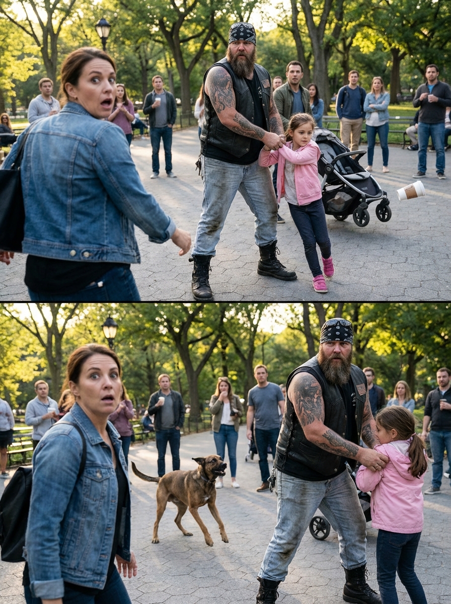 The biker shouted and yanked a little girl out of her mother’s arms in the middle of the park, and for one breathless second, everyone thought they were witnessing a kidnapping.