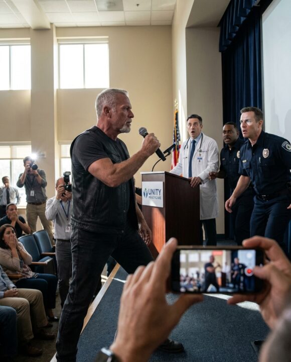 He Snatched the Microphone at a Hospital Press Conference — What the Biker Revealed Froze the Entire Room