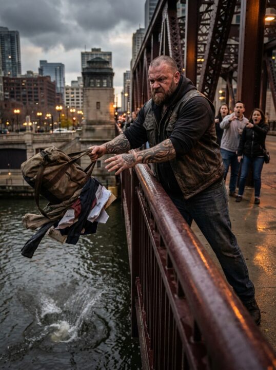 The heavily tattooed biker stood on the edge of the bridge and calmly threw his wallet, his phone, and then his entire duffel bag into the river below in front of dozens of stunned strangers, leaving everyone asking the same question—why would someone deliberately erase their own life in broad daylight?