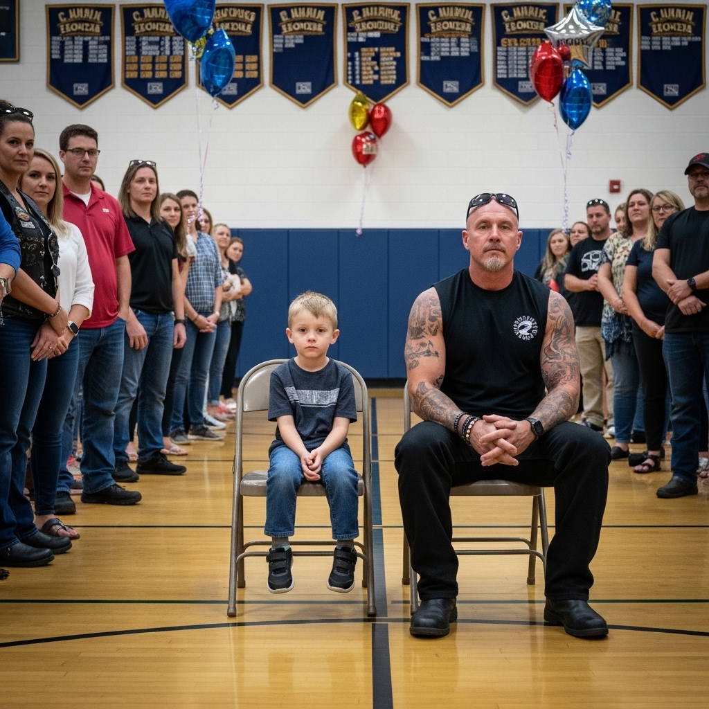 When the principal asked parents to stand beside their children, one small boy remained seated—alone—while the entire gym rose around him.