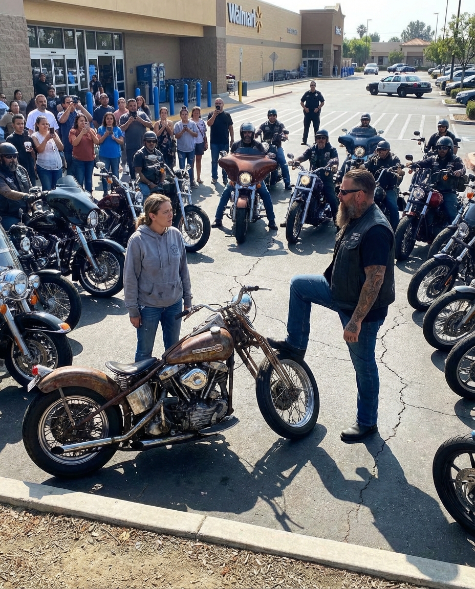 The crowd started shouting when a tattooed biker slammed his boot onto my rusted Harley and told me to walk away—like I had just stolen something that wasn’t mine.