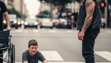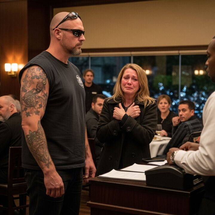 The biker glanced at the woman. Not at her clothes. Not at her shoes. At her face. He noticed the way her jaw was set, the way her fingers trembled despite her effort to stay composed.