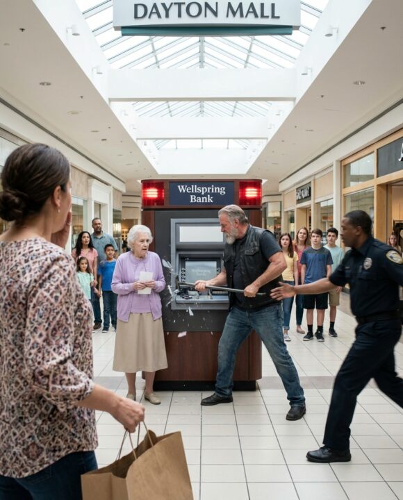 Shoppers froze mid-step inside Maplewood Mall in Dayton, Ohio. A mother pulled her toddler closer. Two teenagers dropped their milkshakes. The red security lights flashed against polished tile floors, turning everything into a scene that felt like a crime already in progress.