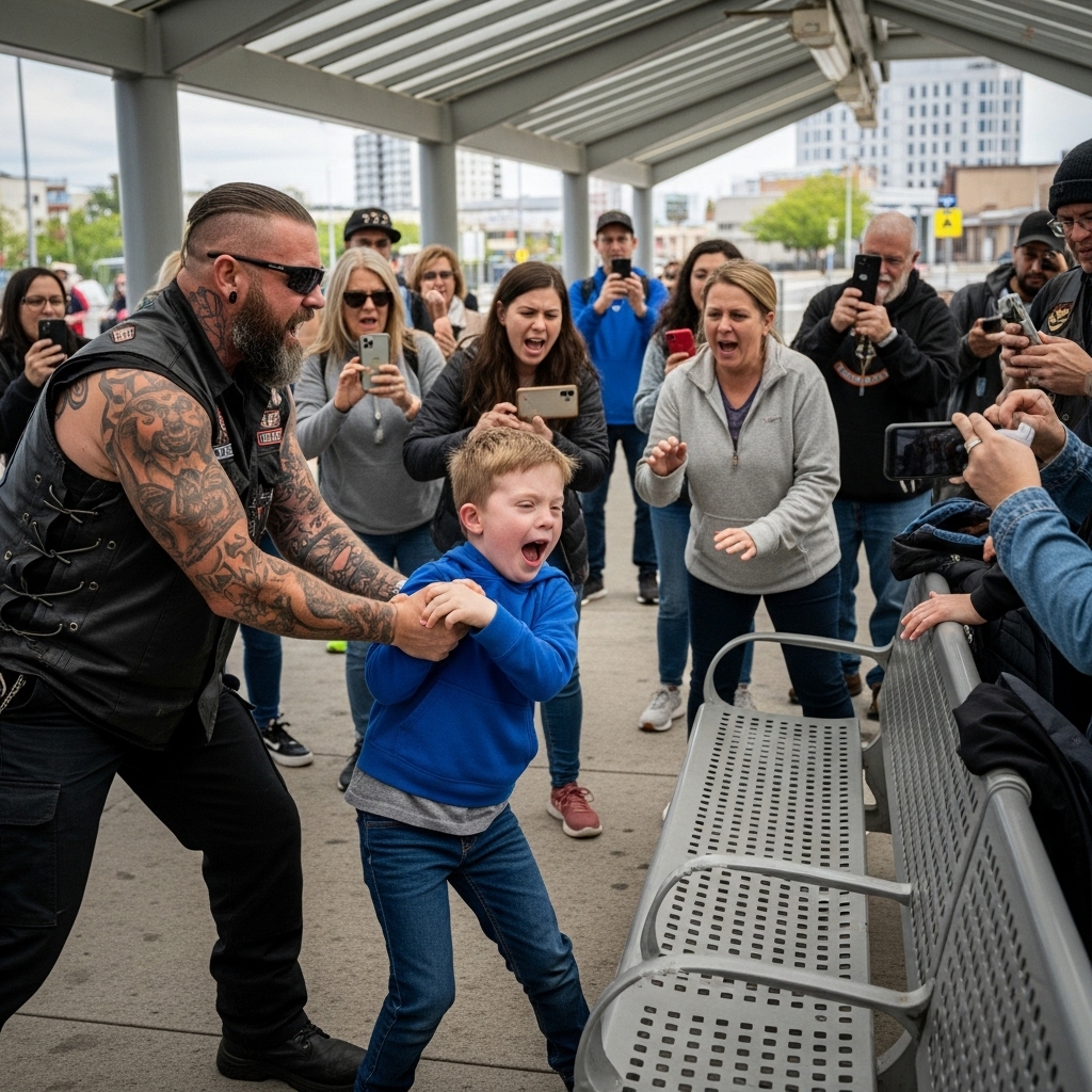 The Biker Who Was Cursed for Pulling an Autistic Child from a Bench — Seconds Later, the Canopy Collapsed Exactly Where He’d Been Sitting
