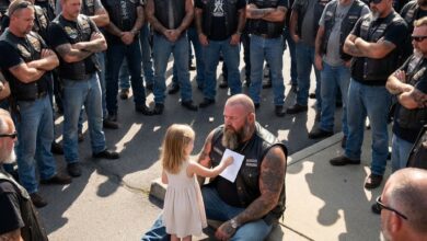 To everyone watching, it looked wrong. A biker kneeling in front of a crying child. Tattoos. Sunglasses. Silence.
