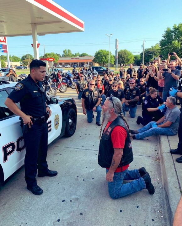 Then another biker knelt.