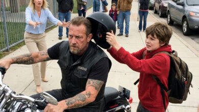 The mother stared at the biker, something shifting behind her eyes—fear mixing with something else. Recognition, maybe. Or dread.