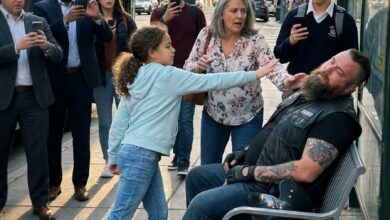 The biker didn’t argue. He didn’t raise his voice. He simply shifted his gaze back to the girl, careful not to move closer.