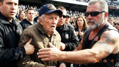 Instead, he slowly pulled the helmet from under his arm and placed it gently on the table, right beside the old man’s coffee cup.