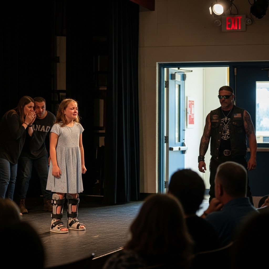 The Music Was Cut While a Disabled Girl Was Performing — And a Biker’s Engine Roared Outside
