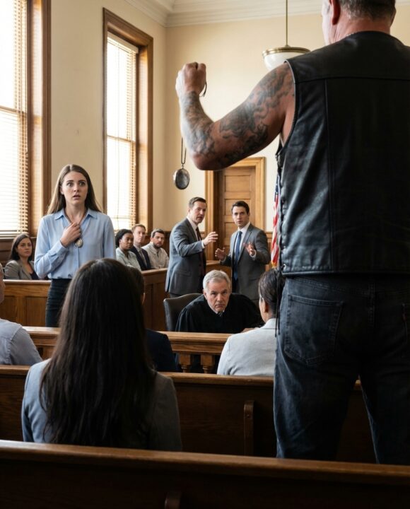The biker glanced toward the front of the courtroom where Emily’s empty chair waited for the next testimony.