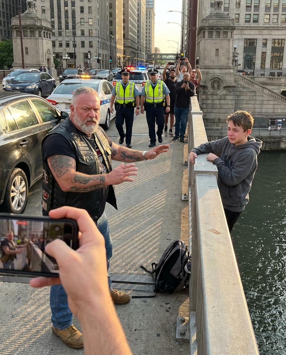 They Thought the Biker Was About to Jump — Until the Police Arrived and Saw the Truth