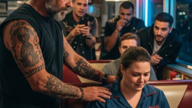 The biker dismounted calmly. No rush. No panic. He was a white American man in his early forties, broad-shouldered, wearing a sleeveless black vest. Tattoos traced down his arms. Sunglasses hid his eyes.